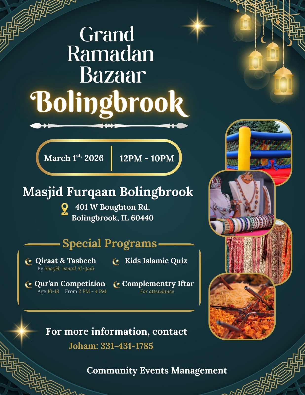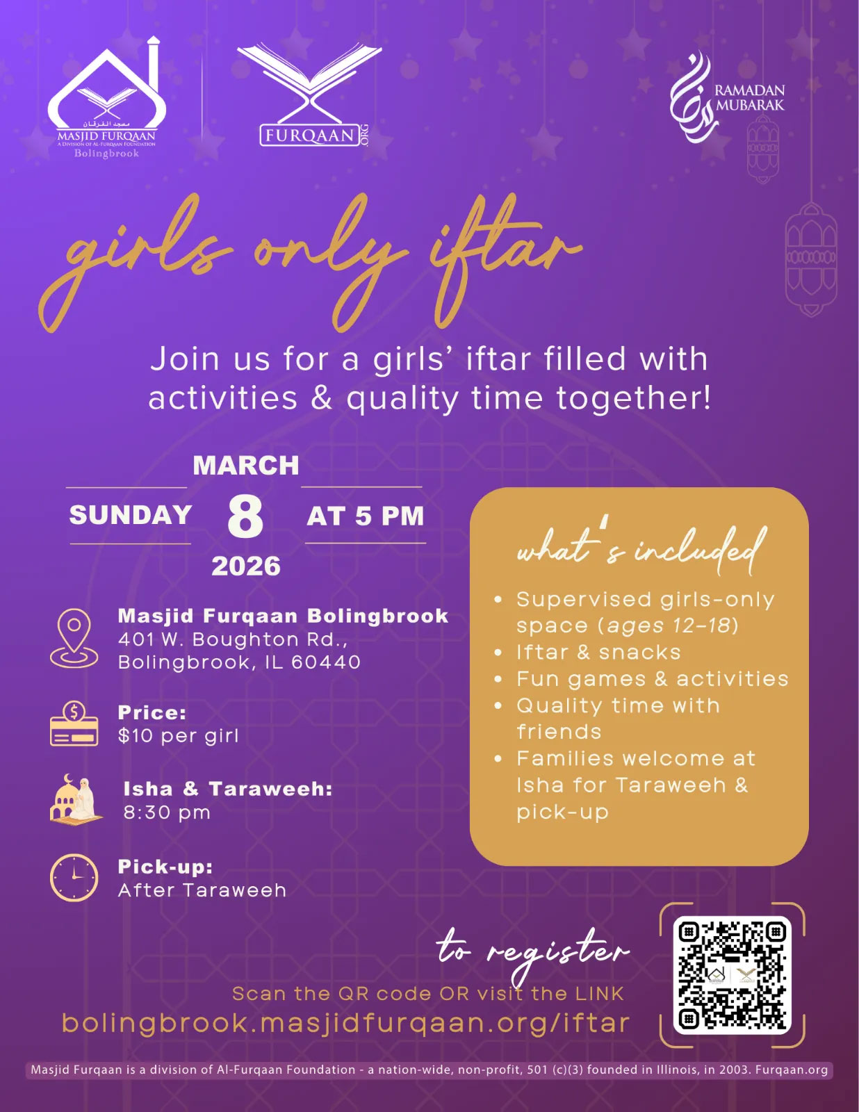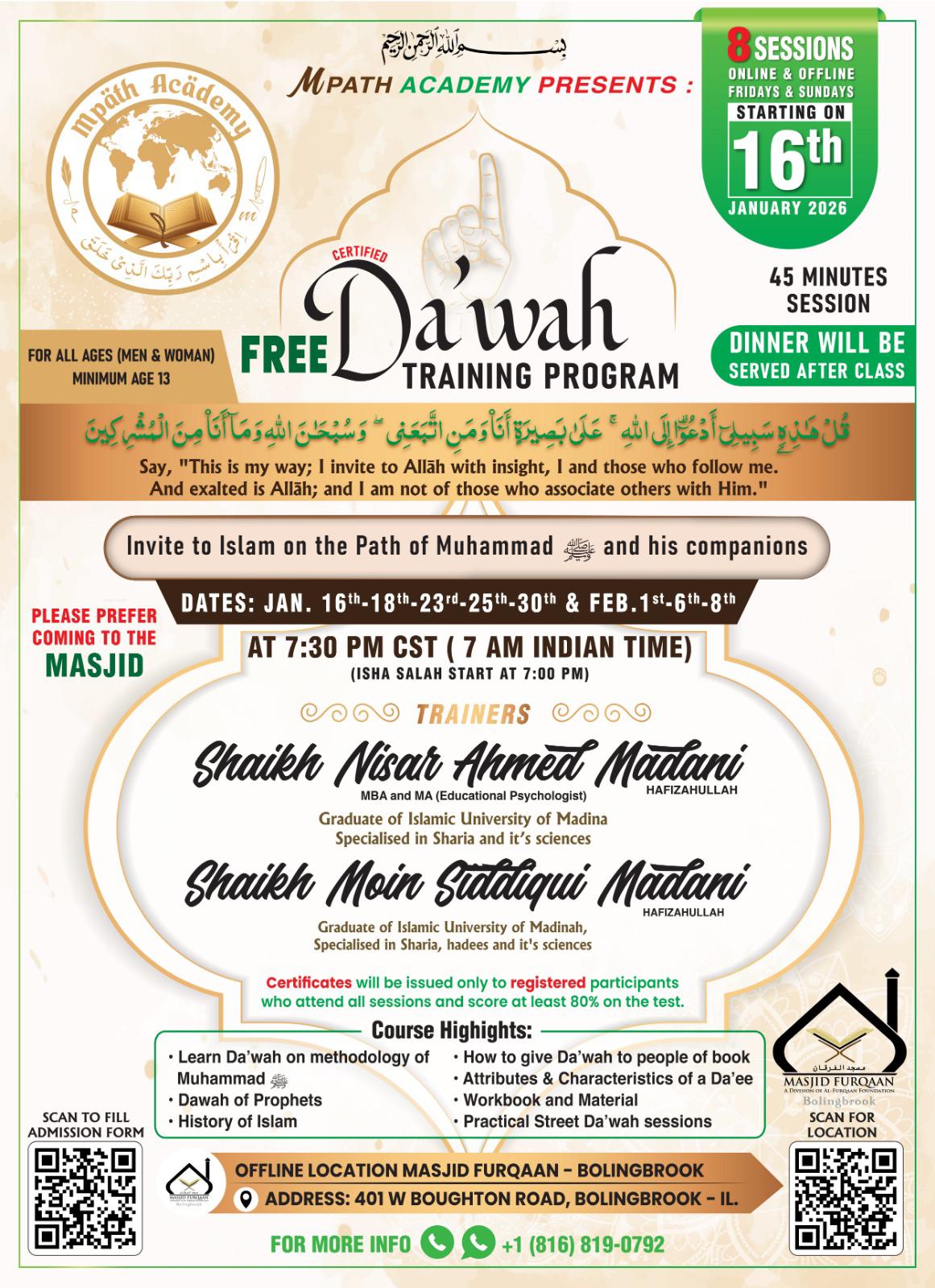 Classes are Tuesdays and Thursdays 6:30 – 8pm at Masjid Furqaan Bolingbrook