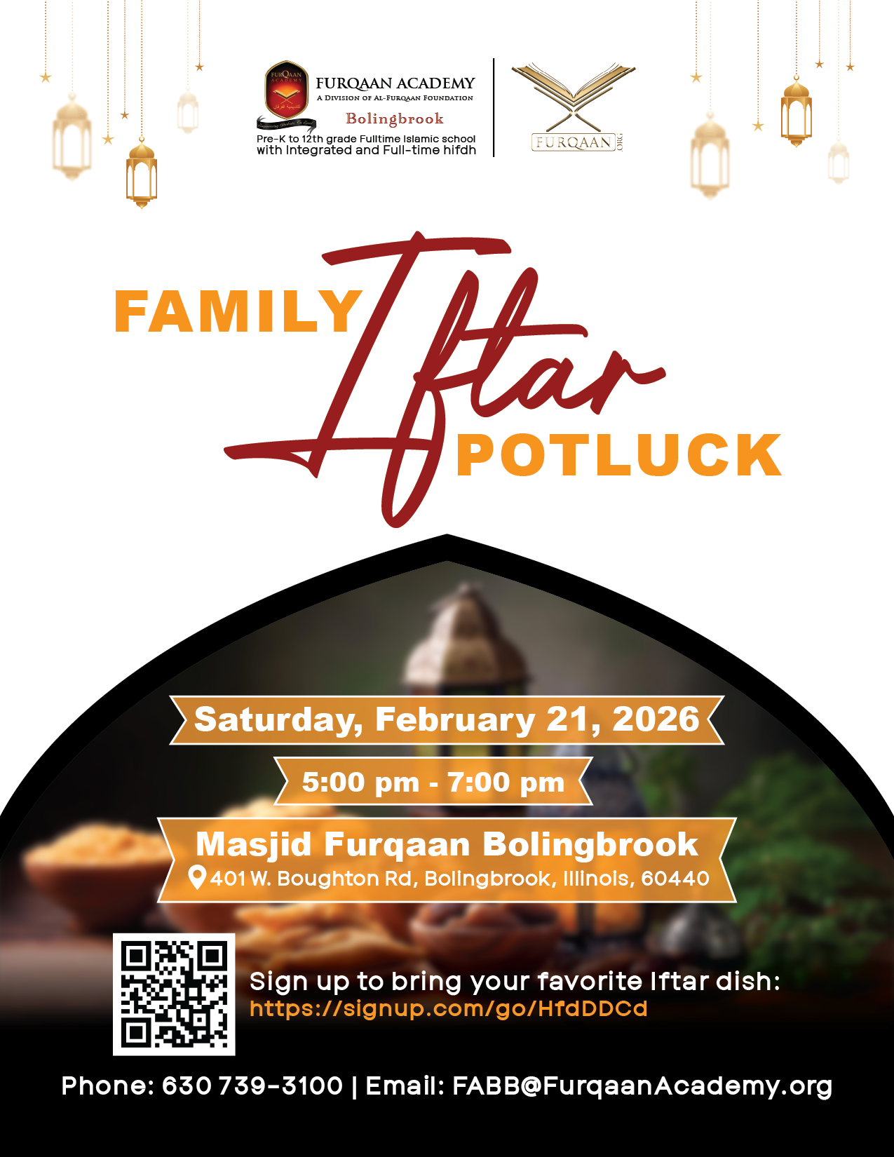 If you'd like to book an Iftar for your family and friends (200 capacity), please